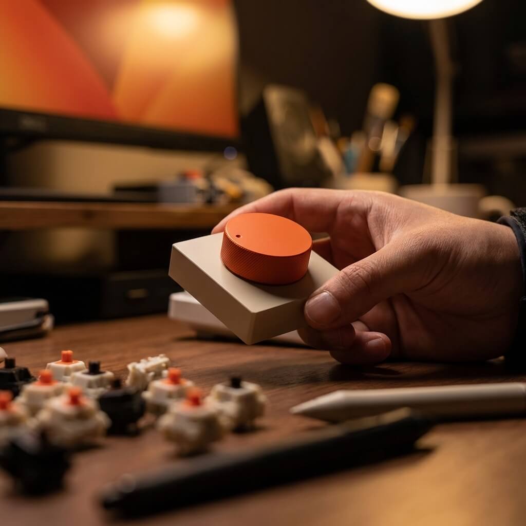 Transform your creative workflow with this striking Bauhaus-inspired programmable rotary controller. Featuring a tactile, high-contrast orange dial, it offers pinpoint precision for video editing, audio mixing, and digital art. The minimalist matte base integrates seamlessly into modern desk setups, making it the ultimate tool for productivity and style. Give the gift of effortless, hands-on control to the creator or audiophile in your life.