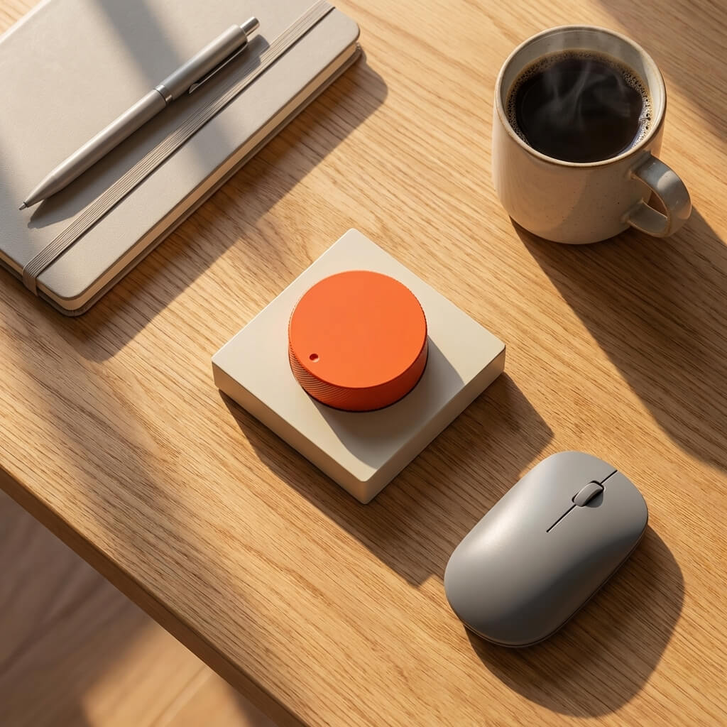 Elevate your digital workspace with a Programmable Wireless Knob that flawlessly blends retro-modern aesthetics with industrial precision. Designed for the modern creator, this Bauhaus-inspired rotary controller is the ultimate tool for editing, designing, and media management.