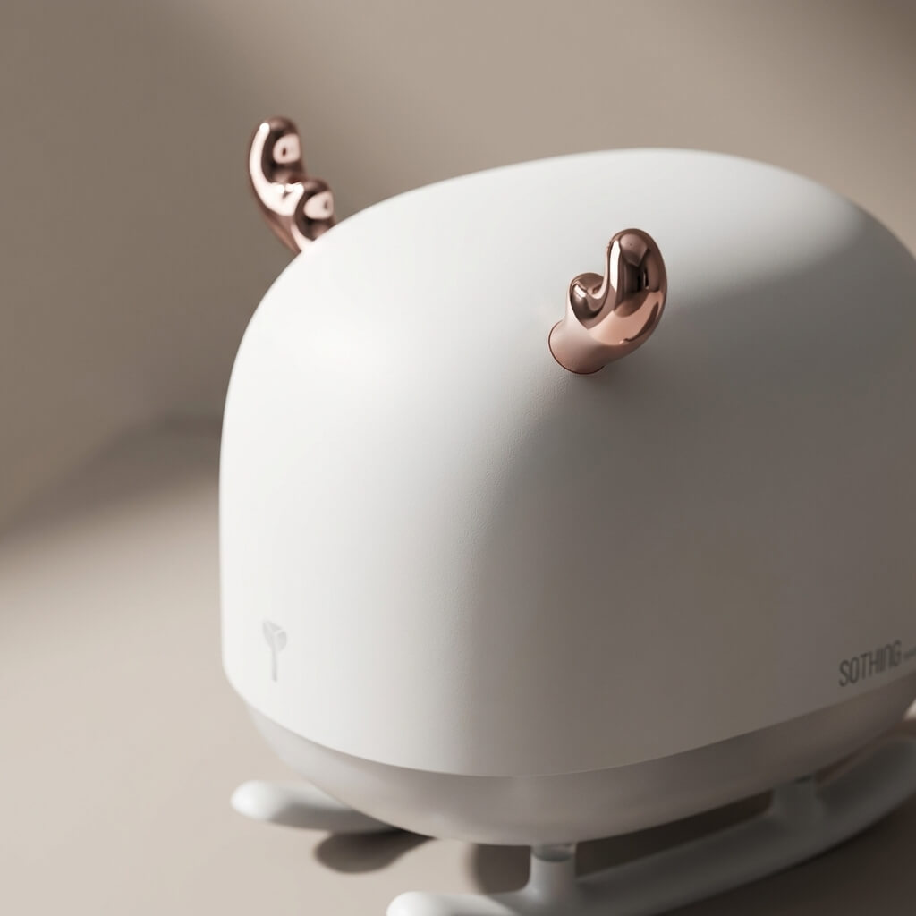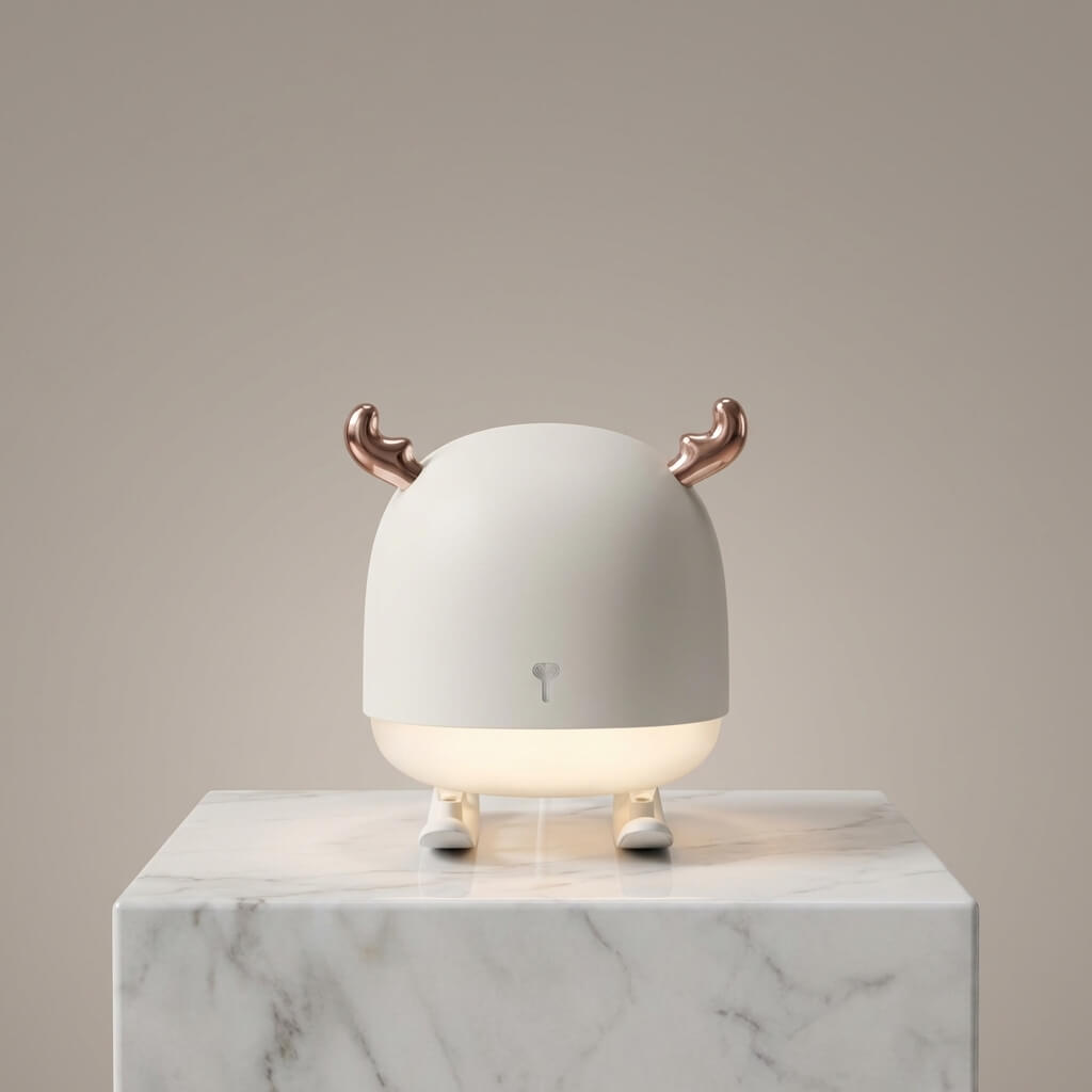 Elevate your desktop or nursery aesthetic with this charming deer sled humidifier and night light. Featuring an elegant matte white finish and rose gold metallic antlers, it beautifully blends modern Scandinavian design with everyday functionality. Enjoy a soothing ambient glow while keeping your personal space comfortably moisturized. A thoughtful and whimsical gift for loved ones of all ages.