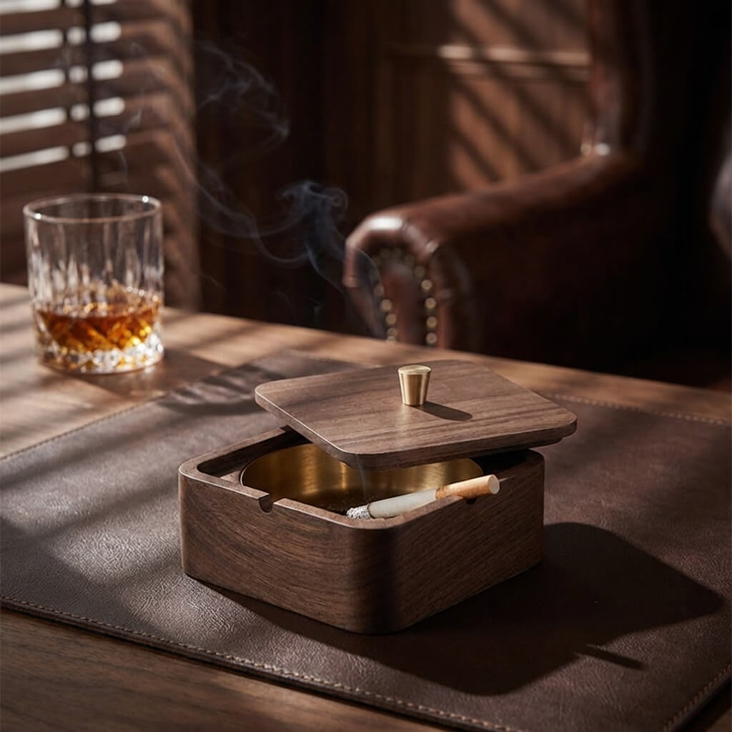 Experience the perfect balance of form and function. Whether enjoying a solo cigar or entertaining guests, this minimalist solid wood ashtray ensures your environment remains impeccable, stylish, and welcoming.