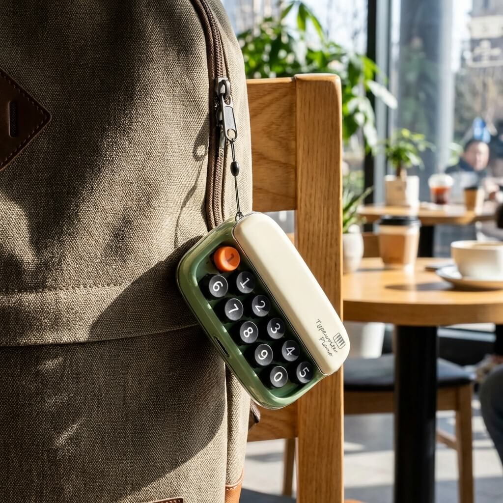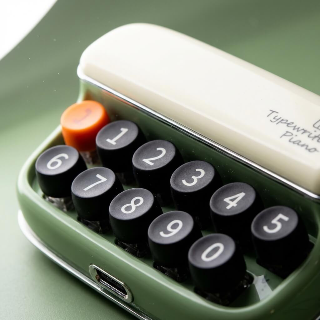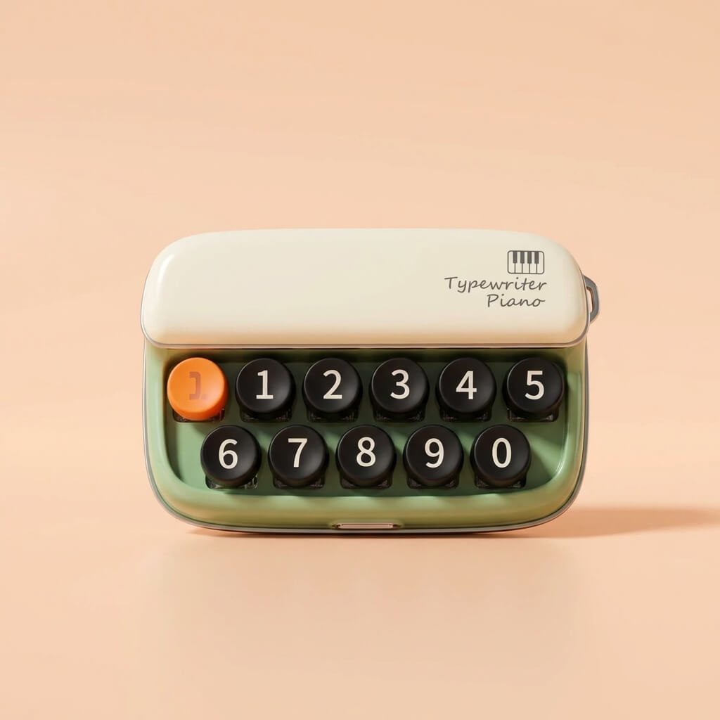 Elevate your desk aesthetic with this charming miniature typewriter piano. Featuring satisfying mechanical-style keys, it offers the ultimate tactile fidgeting experience. The retro cream and sage green design perfectly blends vintage nostalgia with modern novelty appeal. Complete with a lanyard loop, it is the ideal quirky accessory or gift for keyboard enthusiasts.